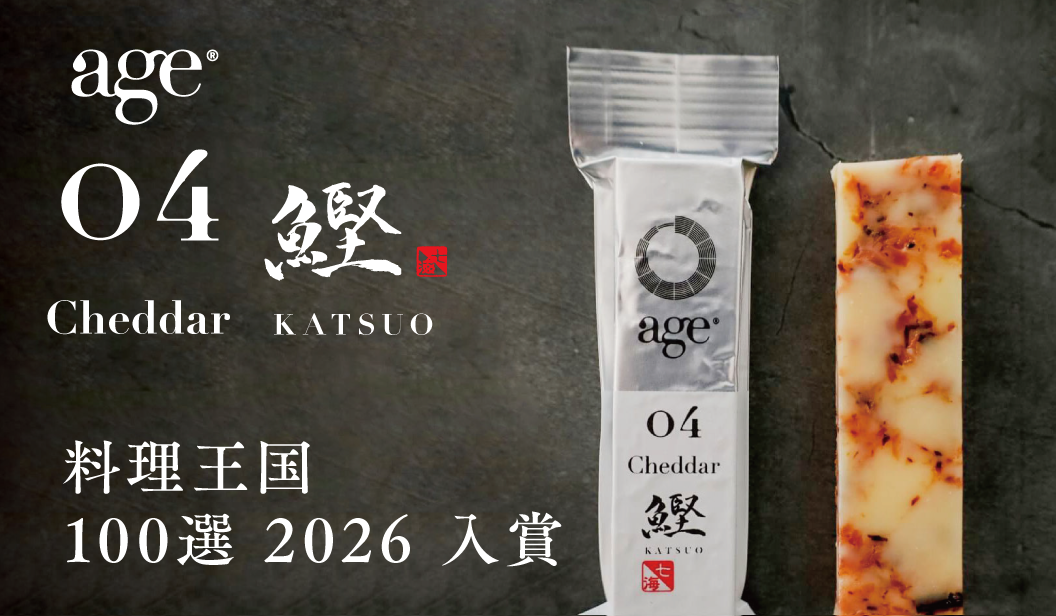 一流料理人や食のプロフェッショナルが審査する「料理王国100選 2026」にて、〈age 04 Cheddar 鰹 KATSUO〉が入賞しました。食の専門家たちによる厳しい品評会での選出は、確かな品質と味わいの証です。